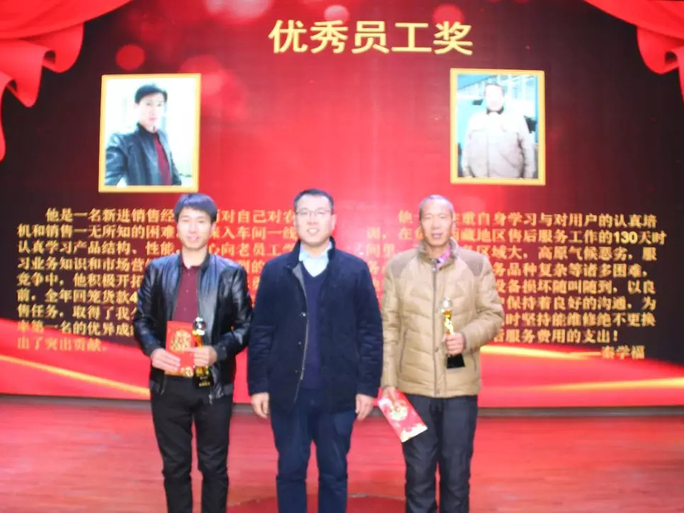 銷售總監李方民與2017年度《優 秀銷售經理》和《優 秀售后服務人員》合影